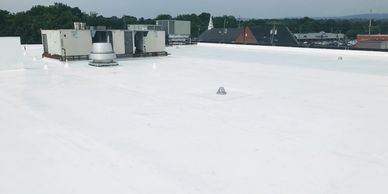 Commercial Shopping Center Low Slope Flat Roof GAF EverGuard Fleeceback TPO Premium Roofing System Install